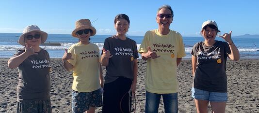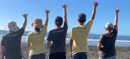 Tシャツの背中に記した『♯がんばろう熱海伊豆山』の文字は、この度の熱海伊豆山の大災害を忘れることなく、今後もこのオハナのように、地域に根差した活動を続けていくべくメンバーの思いが込められています。